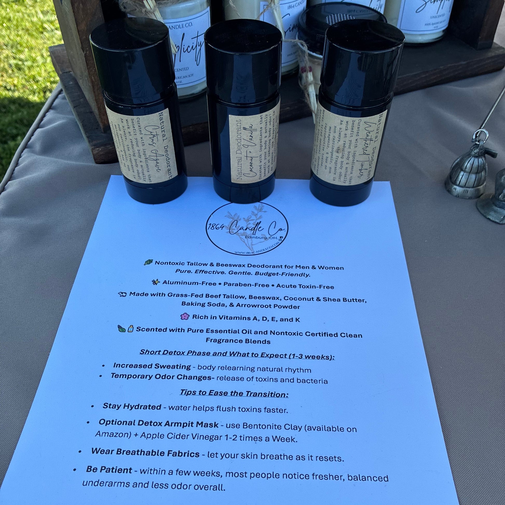 Isn’t it time for a Deodorant that’s Safe, Effective, and Budget-Friendly? Our nontoxic deodorant is made with a simple, effective blend of grass-fed beef tallow, locally supplied beeswax, organic coconut and shea butter, baking soda, and arrowroot powder—ingredients chosen to keep you feeling fresh, dry, and nourished all day long.